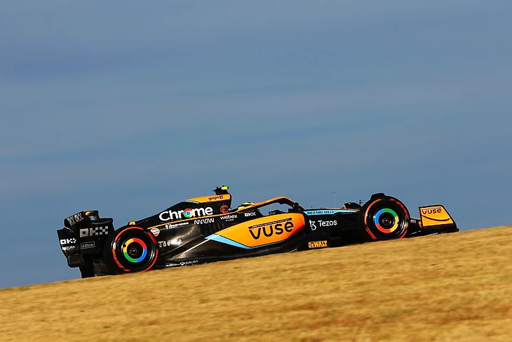 В 2023 году «Макларен» не стесняется выставлять непокрашенный карбон с самого старта. Вот как выглядит MCL60:
