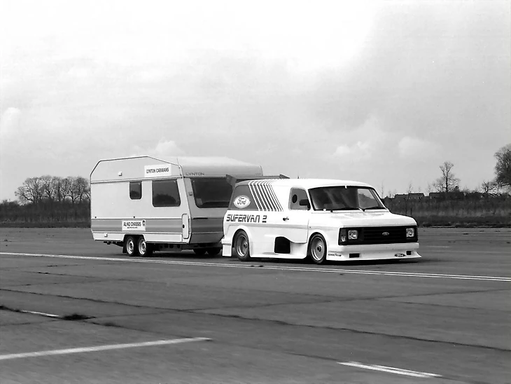 История всем так понравилась, что в 1984-м Ford показал Supervan 2. Тут все было еще серьезнее, хотя и по тому же рецепту. Конструкторы Auto Racing Technology взяли гоночный Ford C100, а вместо стандартного кузова рестайлового Transit сделали фиберглассовую реплику с развитой аэродинамикой. С формульным V8 от Cosworth мощностью 540 л.с. этот монстр разгонялся до 280 км/ч! Правда, шоукаром Supervan 2 поработал чуть больше года, в 1986-м вышло третье поколение Transit.