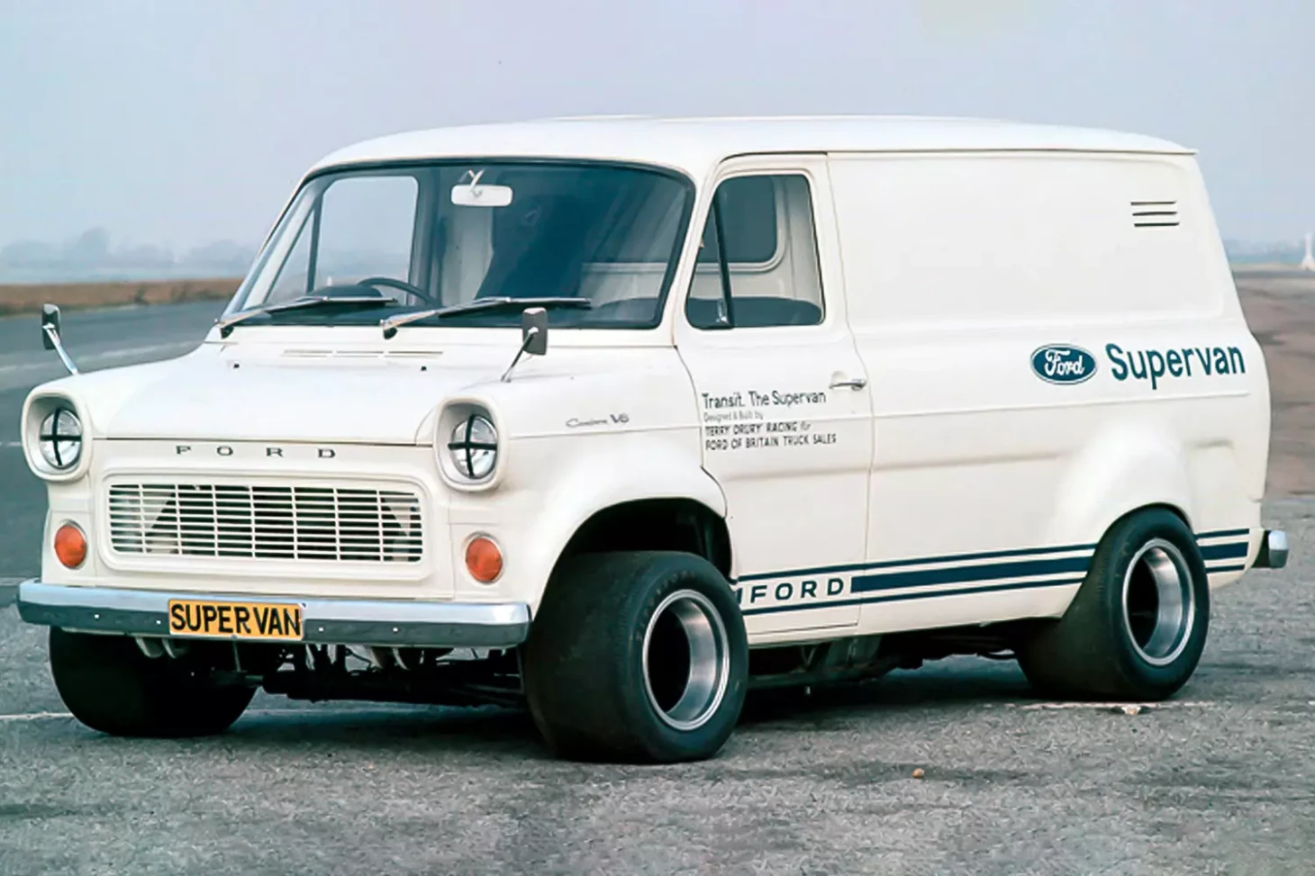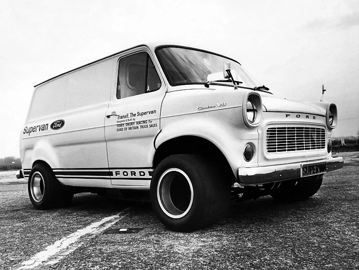 Transit на шасси GT40? Легко! К началу 1970-х Ford Transit был на рынке уже пять лет, и парни из Ford UK решили, что неплохо бы взбодрить продажи своего минивена. Думали сделать из него амфибию, снять в очередной бондиане или тупо залить космический бюджет в рекламу. А потом вспомнили, что у них есть GT40, который с 1966 по 1969 рвал всех в Ле Мане. И… Да, они решили скрестить гоночный болид с минивеном! Инженеры из Terry Drury Racing взяли шасси, мотор и коробку от GT40 и надели на него кузов от Transit.