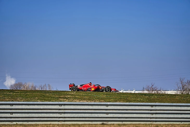 Сразу после показа темных студийных фотографий «Феррари» продемонстрировала творение в деле. Леклер и Сайнс обкатали автомобиль на трассе во Фьорано. Выглядит резво!
