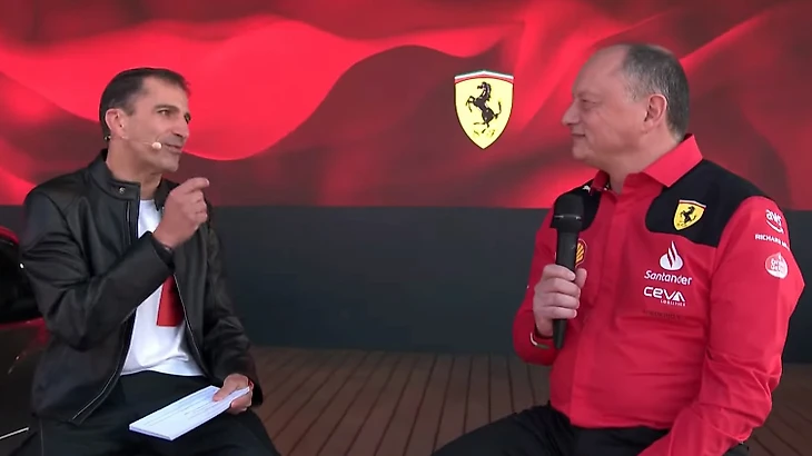 Затем Марк предлагает дать слово главной героини этого мероприятия – машине SF-23. На трансляции дают послушать звук мотора нового болида. После видеофрагмента к Вассёру присоединяются гонщики команды. Теперь всё готово для презентации болида.