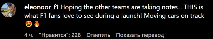 Если будете пересматривать запись на ютубе, увидите сами с какой скоростью летят восхищенные комментарии – их без преувеличений тысячи. У действа уже 1,2 млн просмотров и 44 тысячи лайков, каждый комментарий под роликом – восхищенный. Наверное, даже первые победные гонки 2022-го не встречали с таким же энтузиазмом, а для презентаций новых машин «Ф-1» это и вовсе какой-то абсолютно невиданный космос.