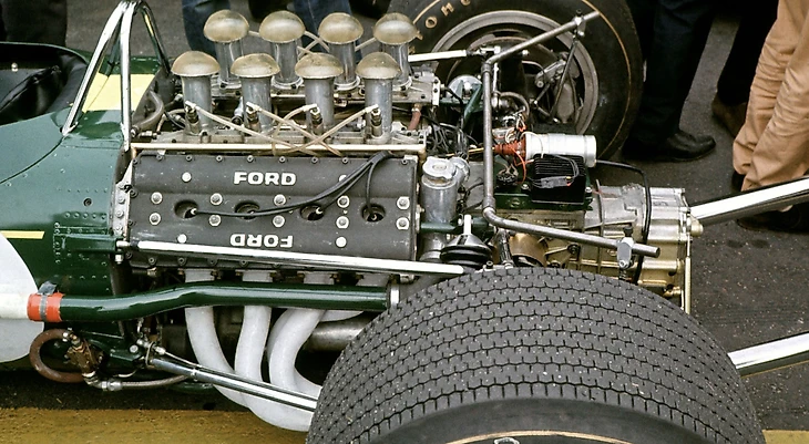Ford профинансировала проект, а производством занималась британская инженерная группа Cosworth. Двигатель V8 DFV стал хитом с момента своего дебюта на Lotus 49 на Гран-При Нидерландов 1967 года, позволив Грэму Хиллу занять поул-позицию с преимуществом в полсекунды над его товарищем по команде Джимом Кларком.