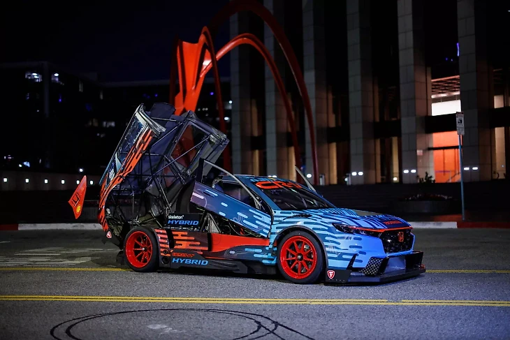 Тут еще одна «гонка» появилась. Японцы, каэш, серьезно упоролись и засунули в базу хондовский 2.2-литровый мотор HI23TT V6 с двумя турбинами Borg Warner EFR7163 и электродвигателем. Как раз такой, какой будет стоять на болидах IndyCar с 2024 года. Мощность под 800 сил.