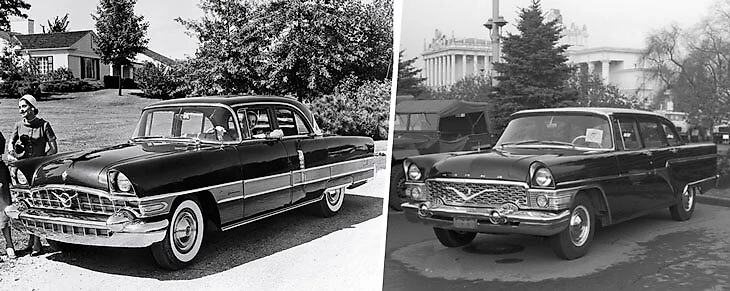 Если «Волгу» многие называли и продолжают называть калькой с «фордовской» линейки Mainline 1953 года, то «Чайку» прозвали советским «Паккардом», указывая на сходство с кабриолетом «Карибиан» и седаном «Патришн».