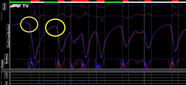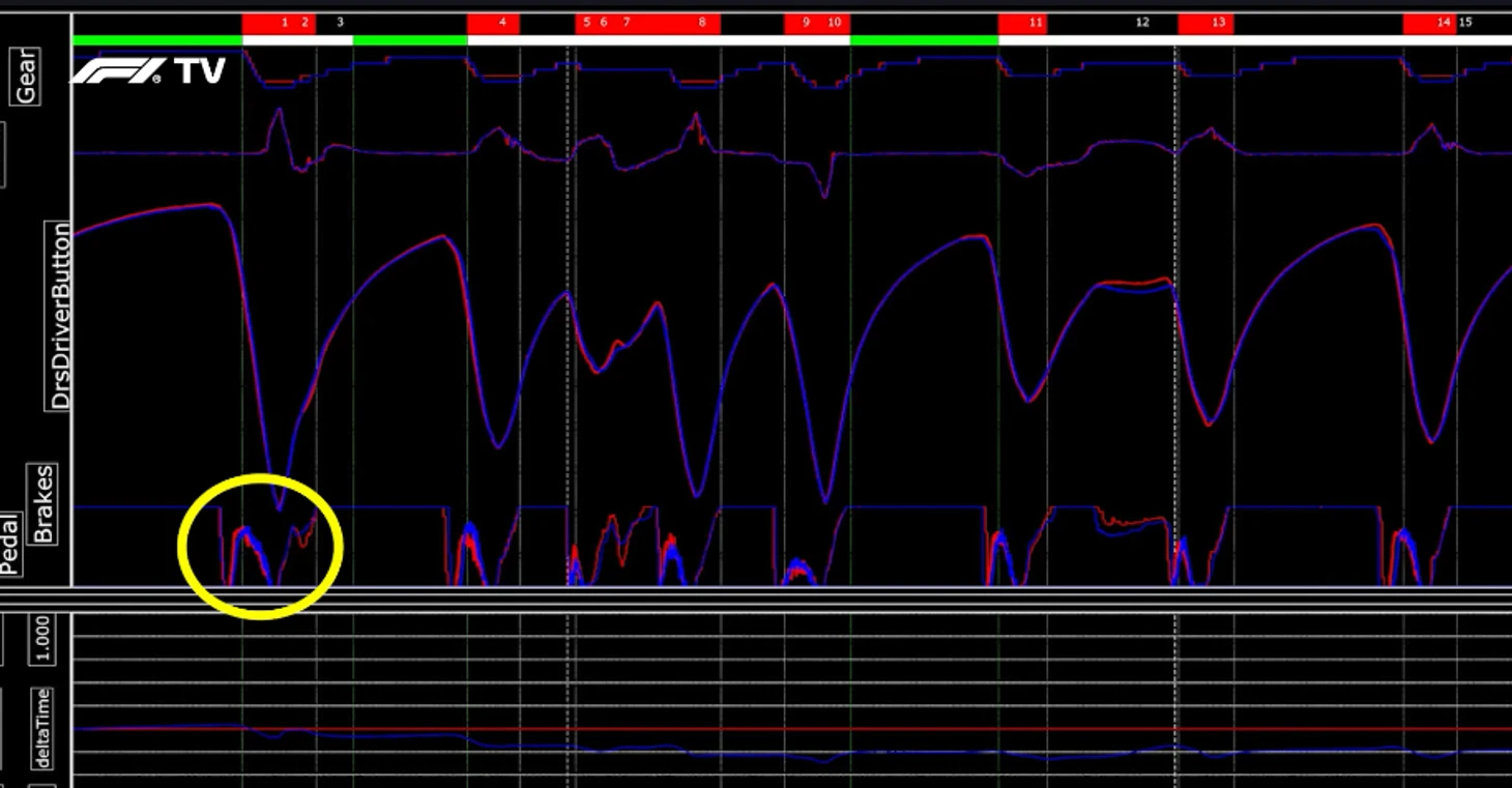 Эксперт F1TV и бывшим гонщик «Рено» Джолион Палмер проанализировал телеметрию – красная линия скорости Макса начинает падать задолго до линии Переса в каждом повороте. Это значит, что потенциально «Ред Булл» мог ехать на 0,5-0,7 секунды быстрее на каждом круге.
