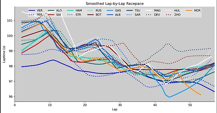Идеальный пример для понимания, насколько же иногда путают данные без контекста. По ним Норрис чуть ли не быстрейший на финальном отрезке гонки и тоже гонявший на уровне «Мерседеса» и «Феррари», по среднему темпу крепкий середняк – как же тогда они проиграли почти два круга?