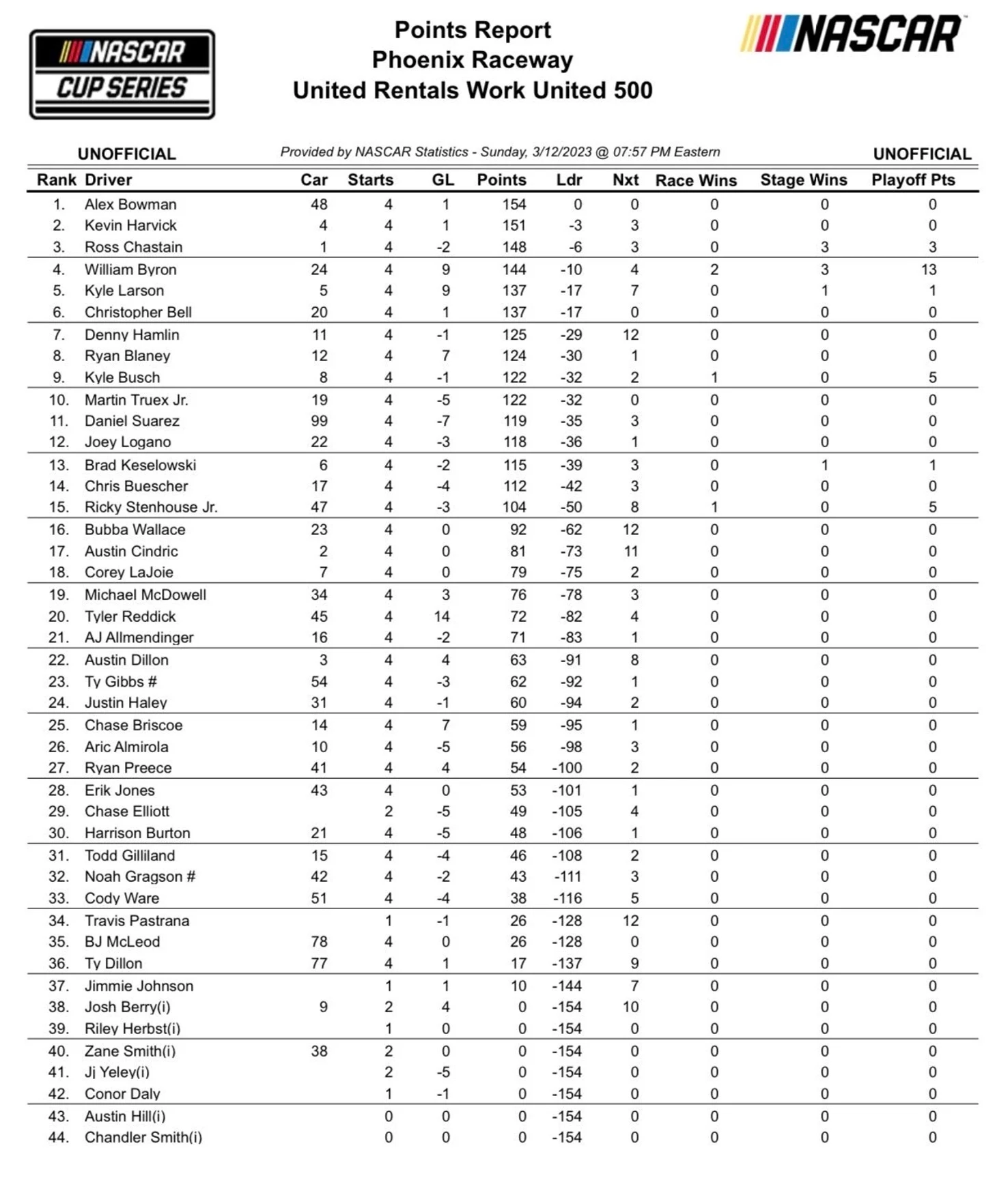 Завершился четвертый этап NASCAR Cup Series в Финиксе. Вторую победу подряд одержал пилот Hendrick Motorsports Уильям Байрон.