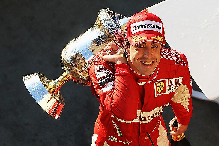 • Главный упущенный подиум (как минимум в Скудерии) – на Гран-при Абу-Даби-2010, финальном этапе сезона: испанец опережал соперников из «Ред Булл» Марка Уэббера и Себастьяна Феттеля на 8 и 15 очков соответственно, стартовал третьим и в случае финиша в топ-2 гарантированно забирал титул (а при победе Феттеля Фернандо требовалось приехать хотя бы 4-м), но из-за стратегической ошибки команды откатился в середину пелотона, застрял за Виталием Петровым и в итоге приехал 7-м. Боль.