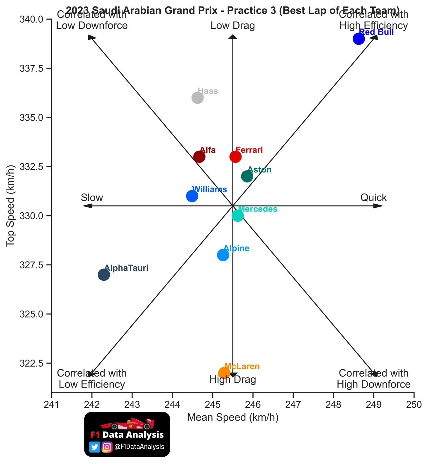 Это как раз вопрос баланса и аэродинамической эффективности шасси – в Милтон-Кейнсе построили болид, генерирующий максимальное количество прижимной силы с наименьшим вредом для максималки. У других команд баланс непременно куда-то сдвигается – либо требуется больше крыльев для лучшего прогрева шин и ускорения в поворотах при потере пары км/ч на прямых, либо приходится жертвовать прижимом ради дополнительного буста на быстрых отрезках.