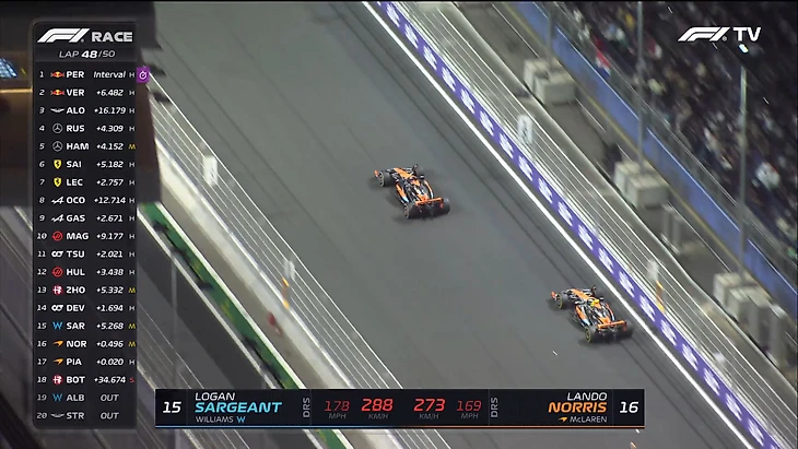 – В подвале пелотона Оскар Пиастри обогнал Ландо Норриса колесо в колесо в битве за 16-е место, но потом уступил позицию обратно. В тонущем «Макларене» жарко.