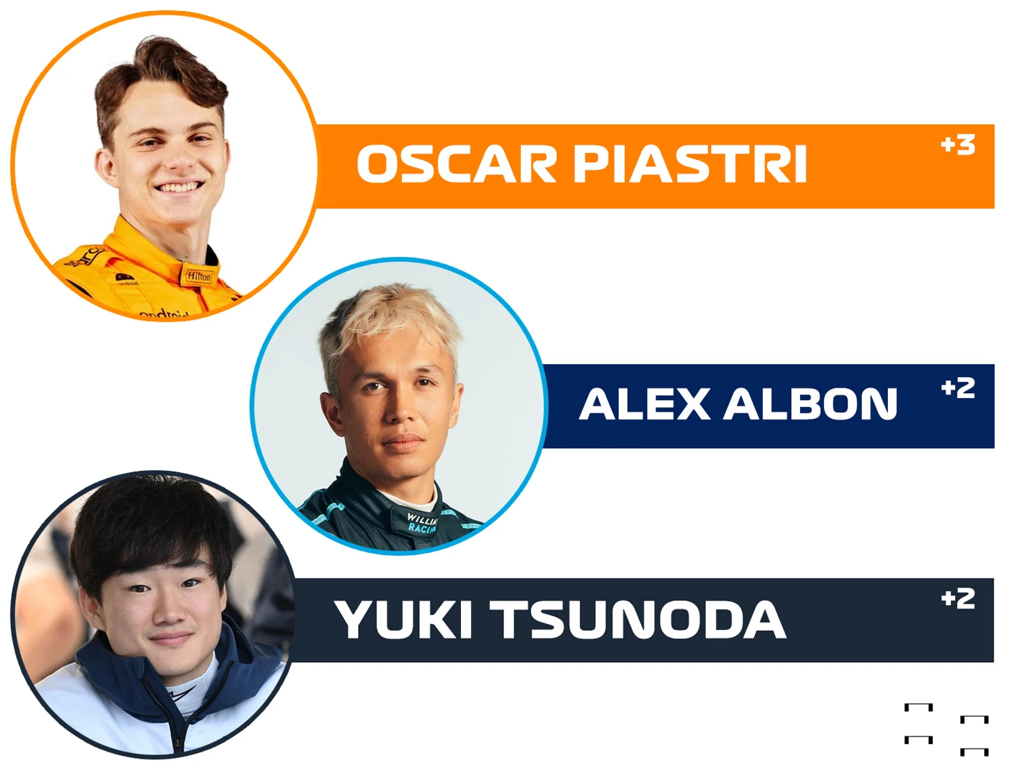 Уже с первых метров этой гонки стало понятно: легко не будет никому. Так, Шарль Леклер не добрался даже до третьего поворота и завершил Гран-при в гравии. В свете этого события половина пелотона поднялась в классификации на одну строчку. С результатом +2 позиции к началу второго круга приехали Алекс Албон и Юки Цунода, а также Ландо Норрис и Кевин Магнуссен. А вот Оскар Пиастри поднялся с 16-го на 13-е место - отличный результат для австралийца.