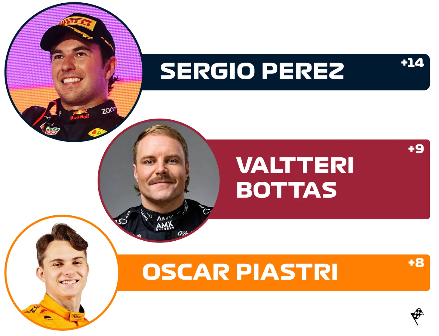 Не могло быть никаких сомнений, что в категории «Лучший финиш» победит Серхио Перес - так оно и вышло. Проблемы с тормозами, возникшие на машине мексиканца в третьей тренировке, не были решены - и квалификация закончилась для Переса в гравии. В итоге после замены элементов силовой установки пилот «Ред Булл» вынужден был стартовать с пит-лейн, а к финишу стал пятым, отыграв 14 позиций и присовокупив к этому быстрейший круг гонки. Следует отметить, что впечатляющий результат был достигнут в том числе благодаря обилию сходов среди конкурентов Переса.