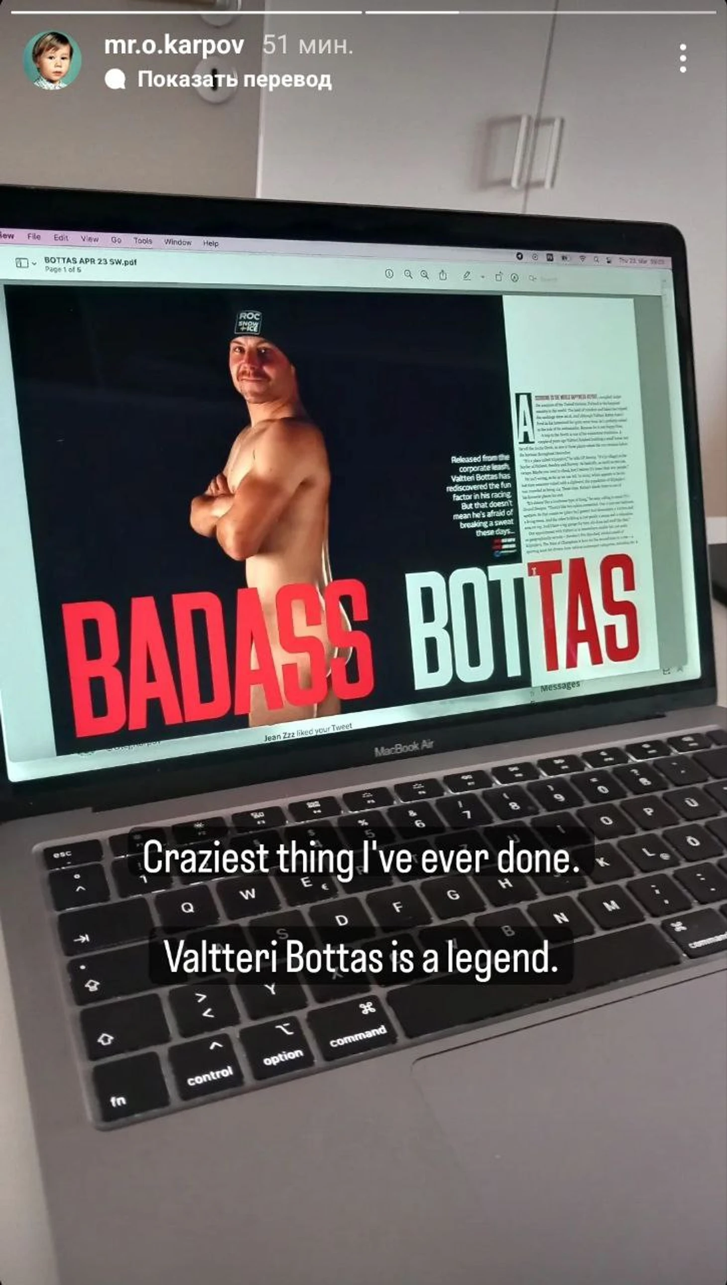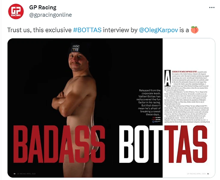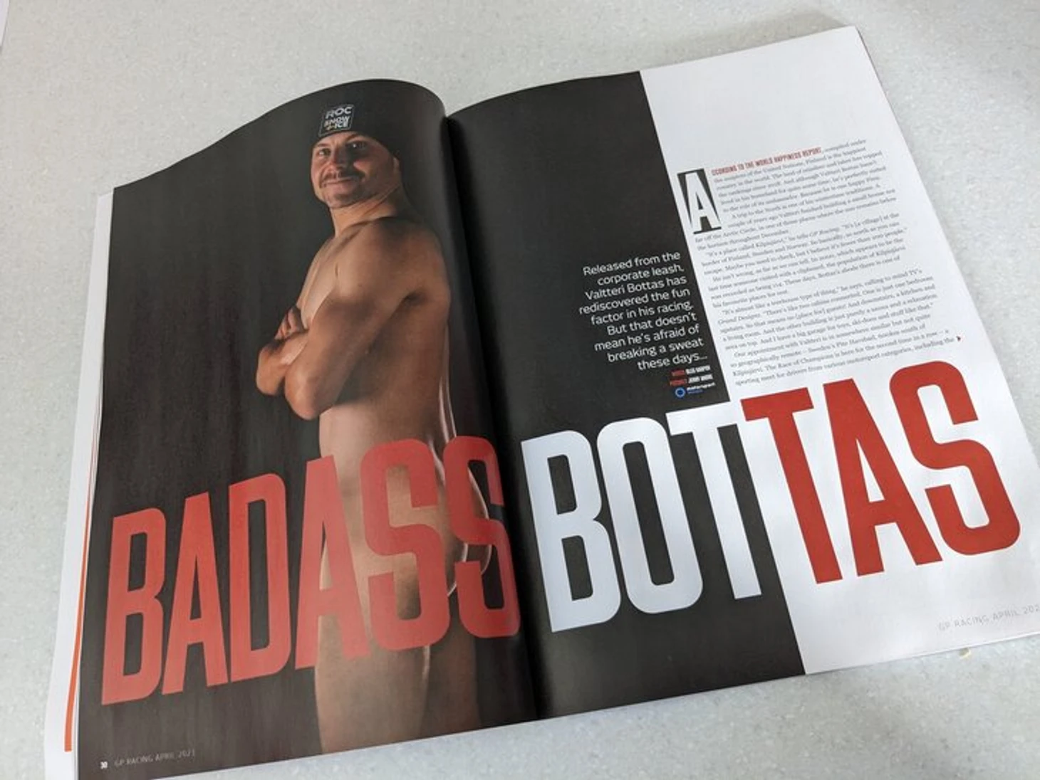 Это должно быть интервью в сауне – и оно вышло таким. Там не только фото голого Боттаса, там еще фотка, где он обливается из ведра, сидящего на скамеечке...