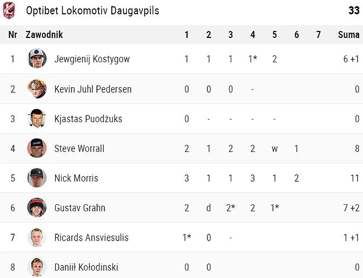 В итоге все это вкупе, а еще и не самое лучшее состояние трека в Равиче, сказалось на результате. Дело в том, что накануне, в пятницу, там весь день шел дождь, и привести дорожки в должный вид возможности особой не было. В итоге работала лишь одна траектория. Учитывая, что гонщики Равича успели изрядно покататься у себя на стадионе, то они были прекрасно знакомы с этой траекторий. И нет ничего удивительного, что они и одержали убедительную победу над даугавпилсским клубом.