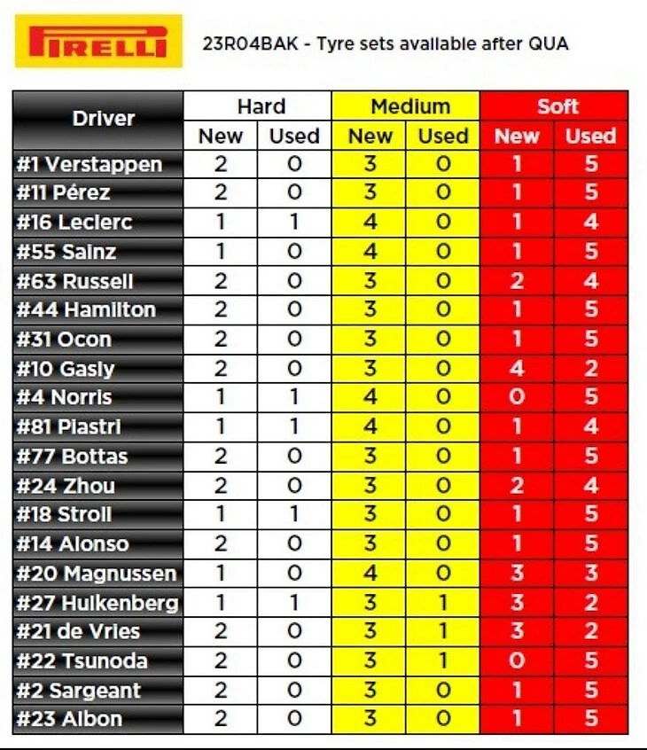 «Мы и в первой практике выдали максимум, чтобы заполучить лучший шанс на старт повыше в воскресенье, – подтвердил и главный гоночный инженер «Альфа Таури» Джонатан Эддоллс. – Оба наших пилота еще оттренировались на двух свежих «софтах» и «медиумах», потому их у нас и не осталось».