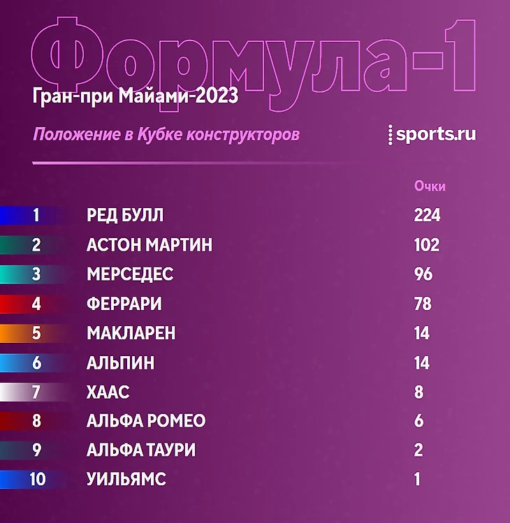 Что с общим зачетом? Ферстаппен отрывается от Переса – все-таки Серхио не капитализировал поул и шанс вернуться в реальную схватку за титул. Алонсо полностью укрепился на 3-м, схватка между «Феррари» и «Мерседесами» – только за 4-е.