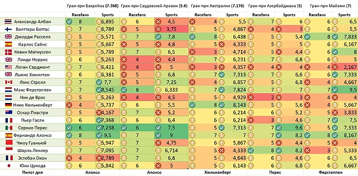 Ферстаппен и Перес признаны героями гонок в Баку и Майами. Алонсо лидер рейтинга