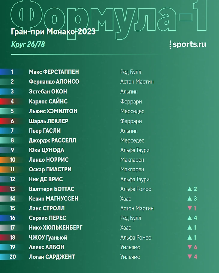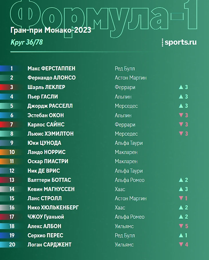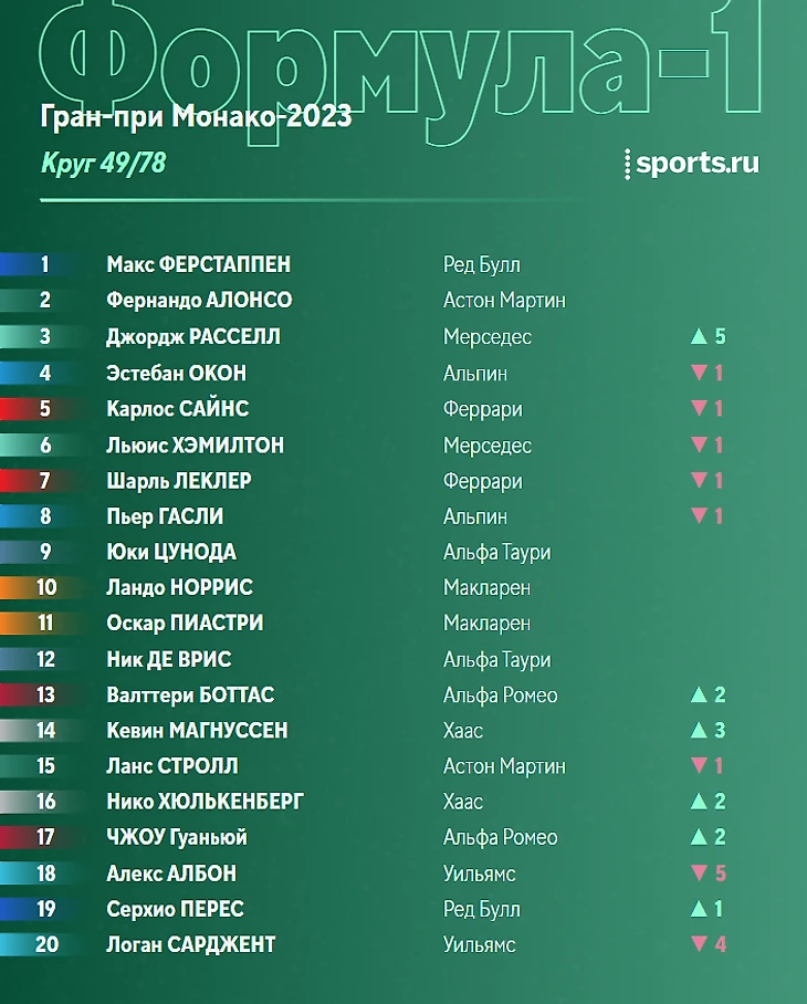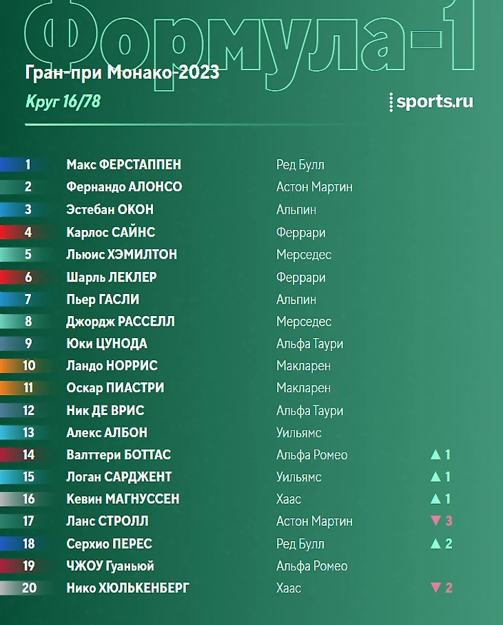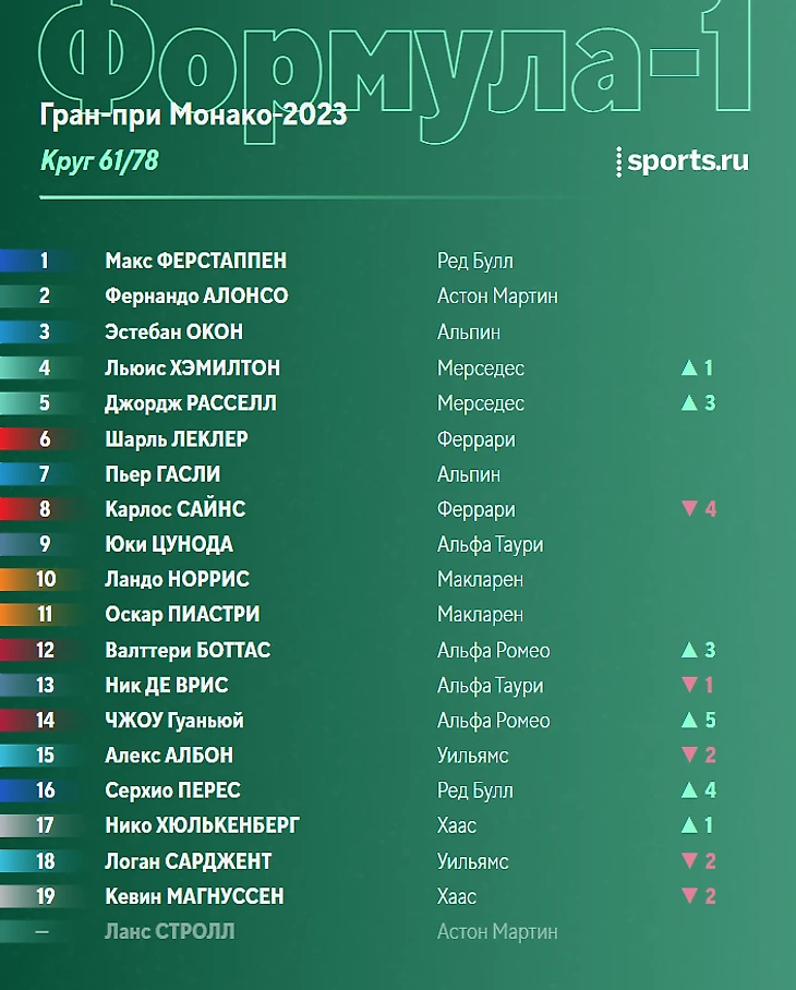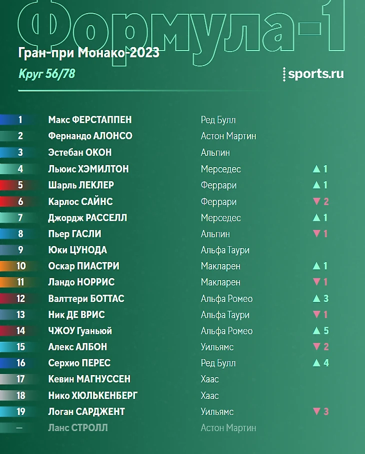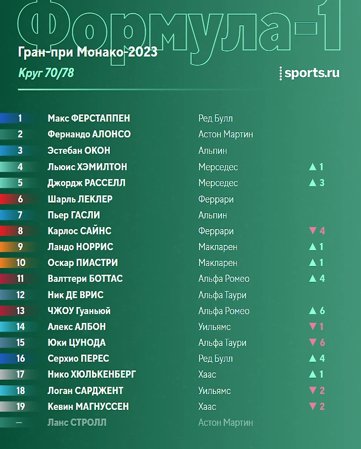 Наиболее плотная борьба сейчас в паре Магнуссен-Стролл. Ланс пытается реализовать преимущество «Астон Мартин» в скорости, но провести вменяемую атаку в Монако крайне трудно.