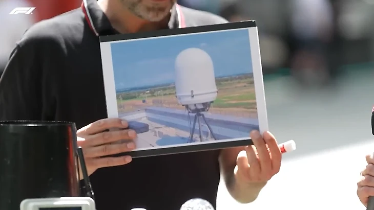 Вторая часть системы слежки за погодой – радар. Недостаточно знать, что происходит на трассе в данный момент, важно следить и за изменением погоды в течении всей сессии, чтобы суметь скорректировать ее ход в случае необходимости. Радар только один – вот такое приспособлением диаметром в один метр.
