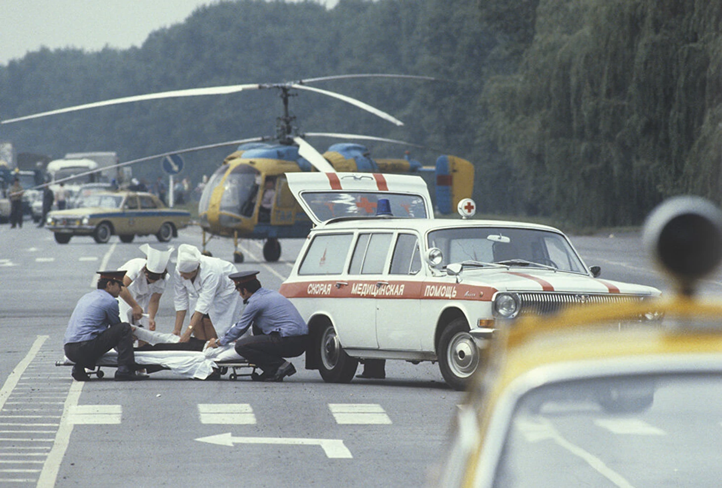 У соседнего подъезда со скрипом тормозов остановилась карета скорой помощи. Врачи спешат по лестнице вверх, водитель «Волги» с цифрами 03 на двери в ожидании курит. Всполошенные событием дворовые мальчишки пытаются заглянуть в салон и разглядеть максималку указанную на спидометре.