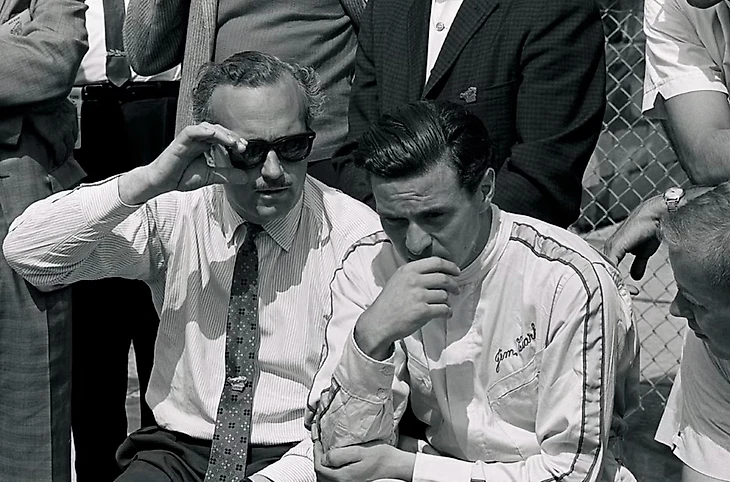 Миссия изменить существующий порядок вещей была поручена Колину Чэпмену. Он стал партнером Ford и установил их 4,2-литровый двигатель V8 на свой Lotus 29 в 1963 году. Только сомнительное политиканство со стороны стюардов гонки помешало великому Джиму Кларку победить в первый раз – судьи проигнорировали утечку масла на Watson Парнелли Джонса, который в итоге одержал спорную победу над, как американцы называли, «смешной машиной». Кларк лидировал в гонке 1964 года до того, как задняя подвеска его Lotus 34 вышла из строя.