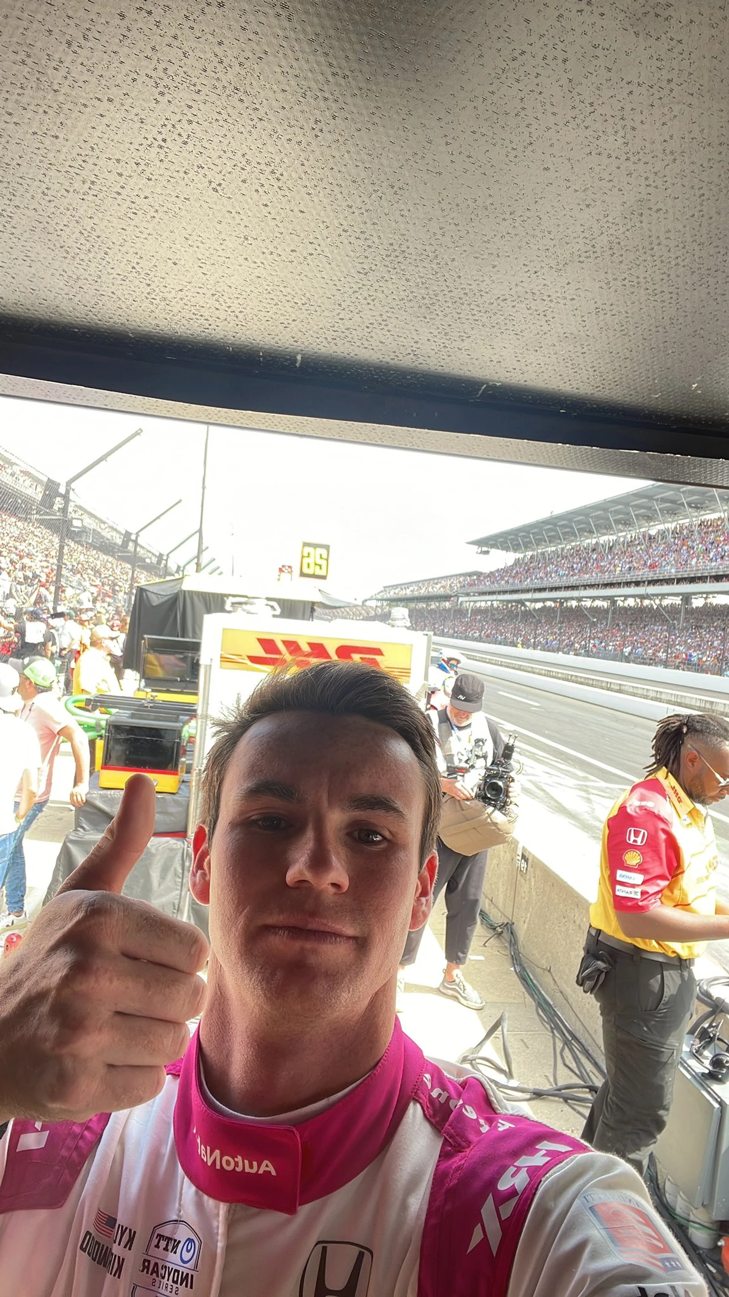 Шведский пилот Феликс Розенквист зацепил стену и начал вращаться, Кирквуд не сумел его объехать и зацепил своим болидом машину шведа – в итоге перевернулся и проехал несколько сот метров вниз головой. Замер тоже в такой неудачной позиции: