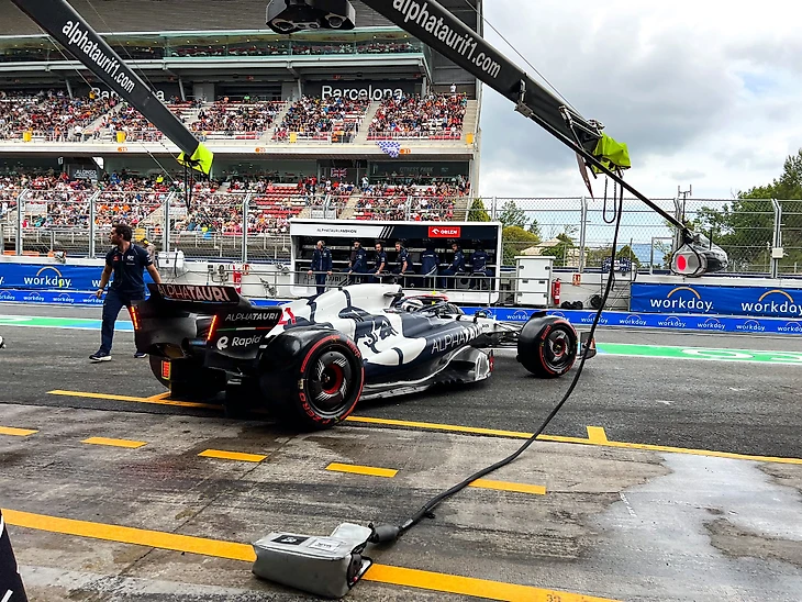 За минуту до старта первого сегмента машины одна за другой стали выезжать на пит-лейн - потому что с неба совсем чуть-чуть, но все-таки что-то капает. Не настолько, чтобы заставить пилотов использовать промежуточные или дождевые шины, поэтому пока не хлынуло (мало ли) - надо постараться проехать быстрый круг на сликах.