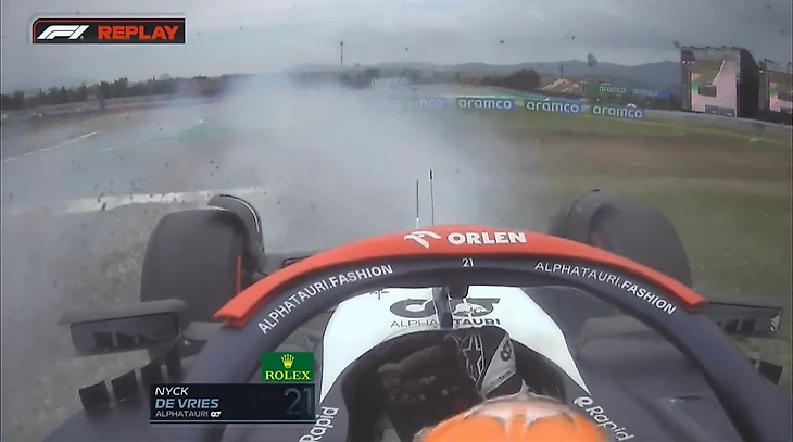 Оказывается, не только у Боттаса были проблемы: Алонсо пришлось отлавливать болид в последнем повороте (даже прокатился по гравию), де Вриса развернуло там же, где едва не улетел Цунода, Албон вовсе полетел в гравий в 5-м повороте.