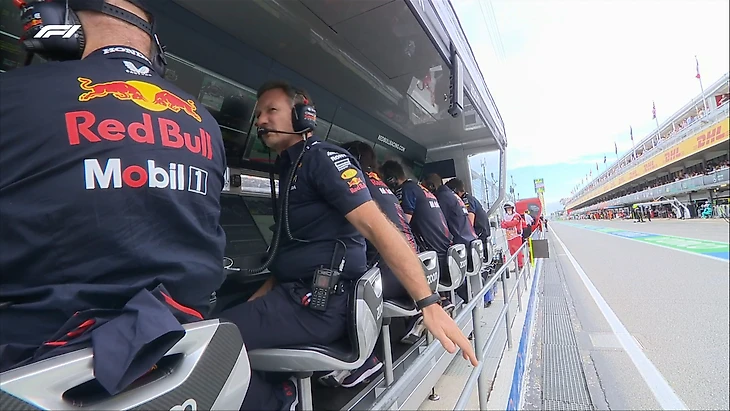 Руководитель «Ред Булл» высунул руку из-под козырька на пит-уолл, чтобы пощупать дождик, но похоже, что пока ничего страшного не случилось.