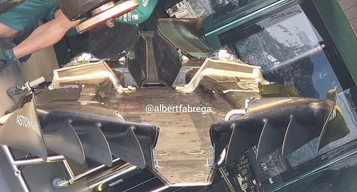 Следом испанский эксперт F1TV и бывший механик «Супер Агури» Альберт Фабрега все-таки подкараулил и момент замены поврежденного днища «Астон Мартин» Ланса Стролла – в сеть ушла фотка секретов последней недостающей топовой команды: