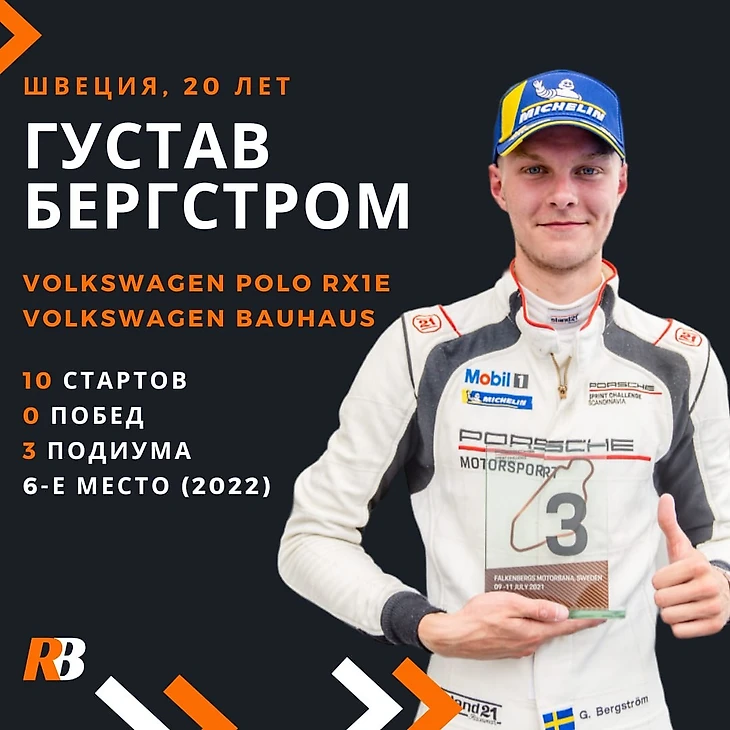 Густав Бергстрем – молодой пилот команды «Фольксваген», очки которого не идут в командный зачет чемпионата (по правилам чемпионата официально в команде может быть только два пилота). В прошлом, дебютном для него сезоне, Густав очень быстро прогрессировал и улучшал результаты и темп от этапа к этапу. Ждем дальнейшего его развития.