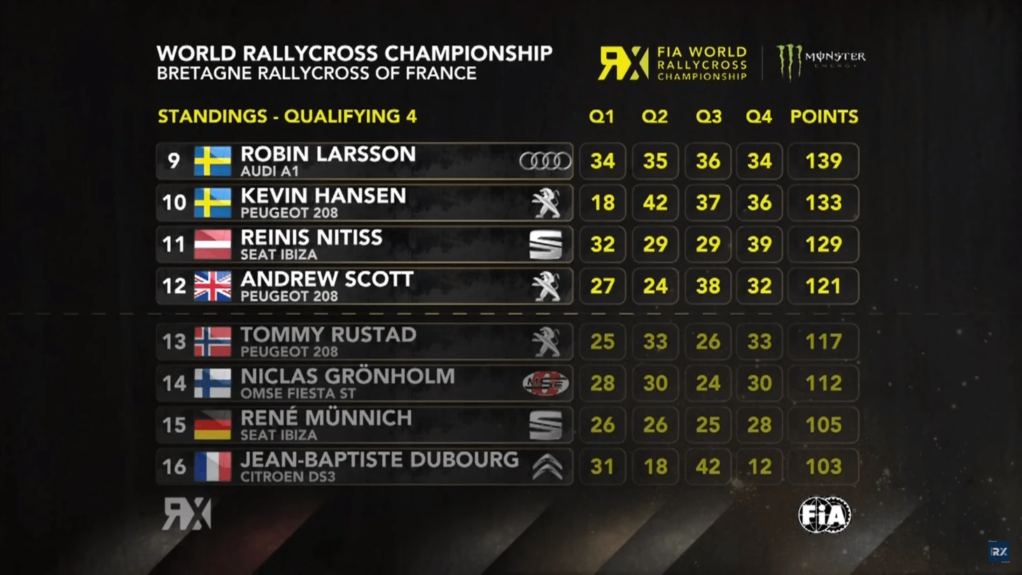 В новом формате очки зачисляются не по результатам каждого хита/полуфинала/финала (как показано на скриншотах выше), а по результатам всего уик-энда. Однако несколько дополнительных очков получают победители квалификации: победитель получает 3 очка, второе место – 2, третье – 1.