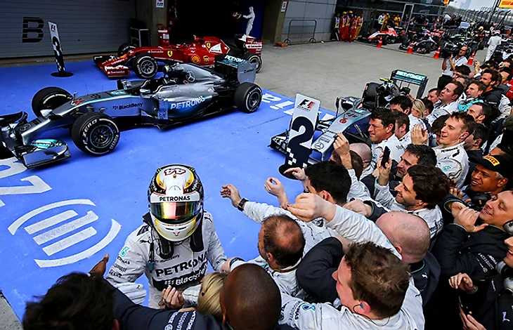 Льюис уверенно шел к завоеванию второго «большой шлема», но напарник в погоне за вторым местом поставил просто космическое время круга — 1.40,402. Потенциал W05 сегодня настолько велик, что гонщикам «Мерседеса» не страшно провалиться на старте на седьмое место, едва не сломать подвеску Боттасу, затем обогнать два болида «Ред Булл» и лучшую из «Феррари» и с легкостью вернуться на вторую подиумную позицию. Хотя, учитывая полное отсутствие телеметрии на протяжении большей части гонки, Росберг проделал классную работу — фактически Нико пилотировал вслепую и полагался лишь на данные по радио. На подиуме немец выглядел расстроенным, и это можно понять: Льюису до лидерства в чемпионате не хватает всего четырех очков, и инициатива явно на его стороне.