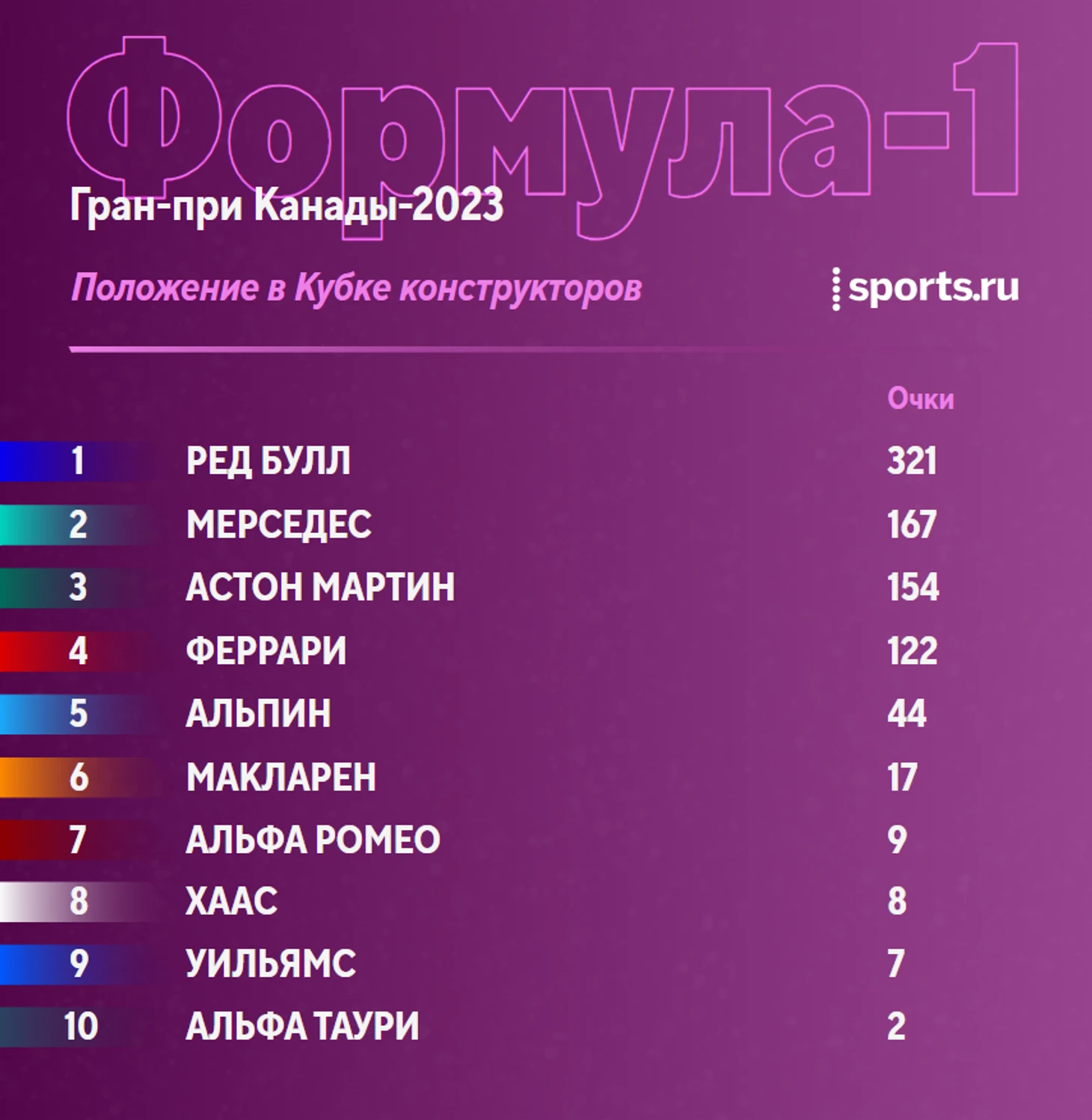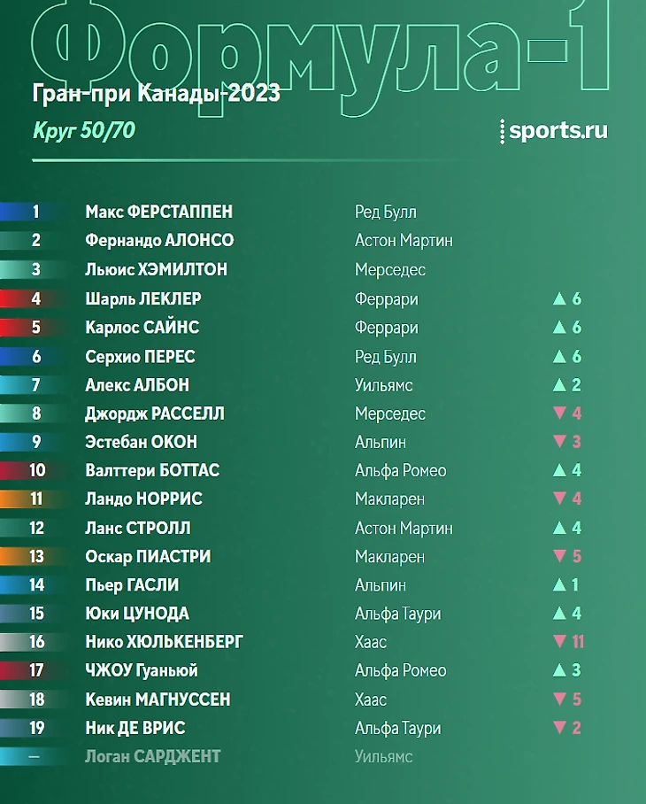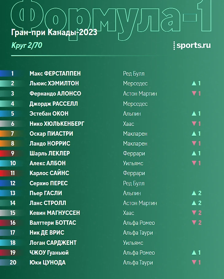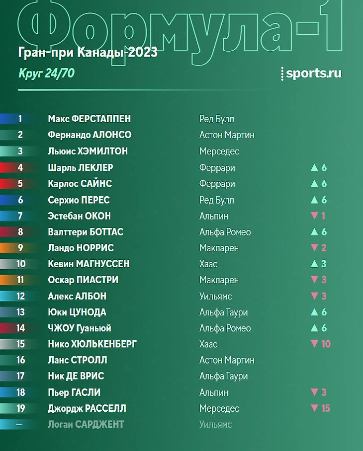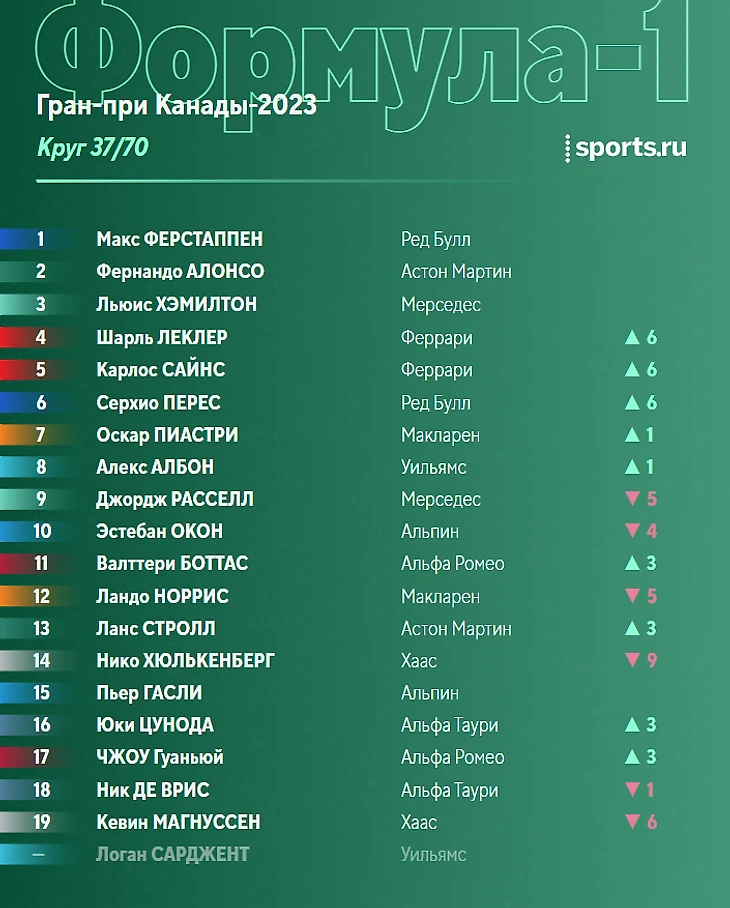 Ситуация в чемпионате перед этапом в Монреале: Ферстаппен отрывается, Хэмилтон борется за топ-3 с Алонсо.
