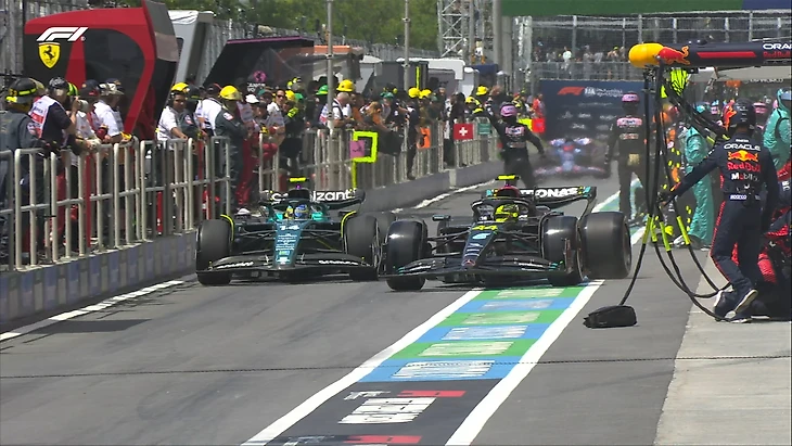 Алонсо чуть не опередил Хэмилтона на пит-стопе! Гонщики немного пободались выезде с пит-лейн, но вроде все в порядке.