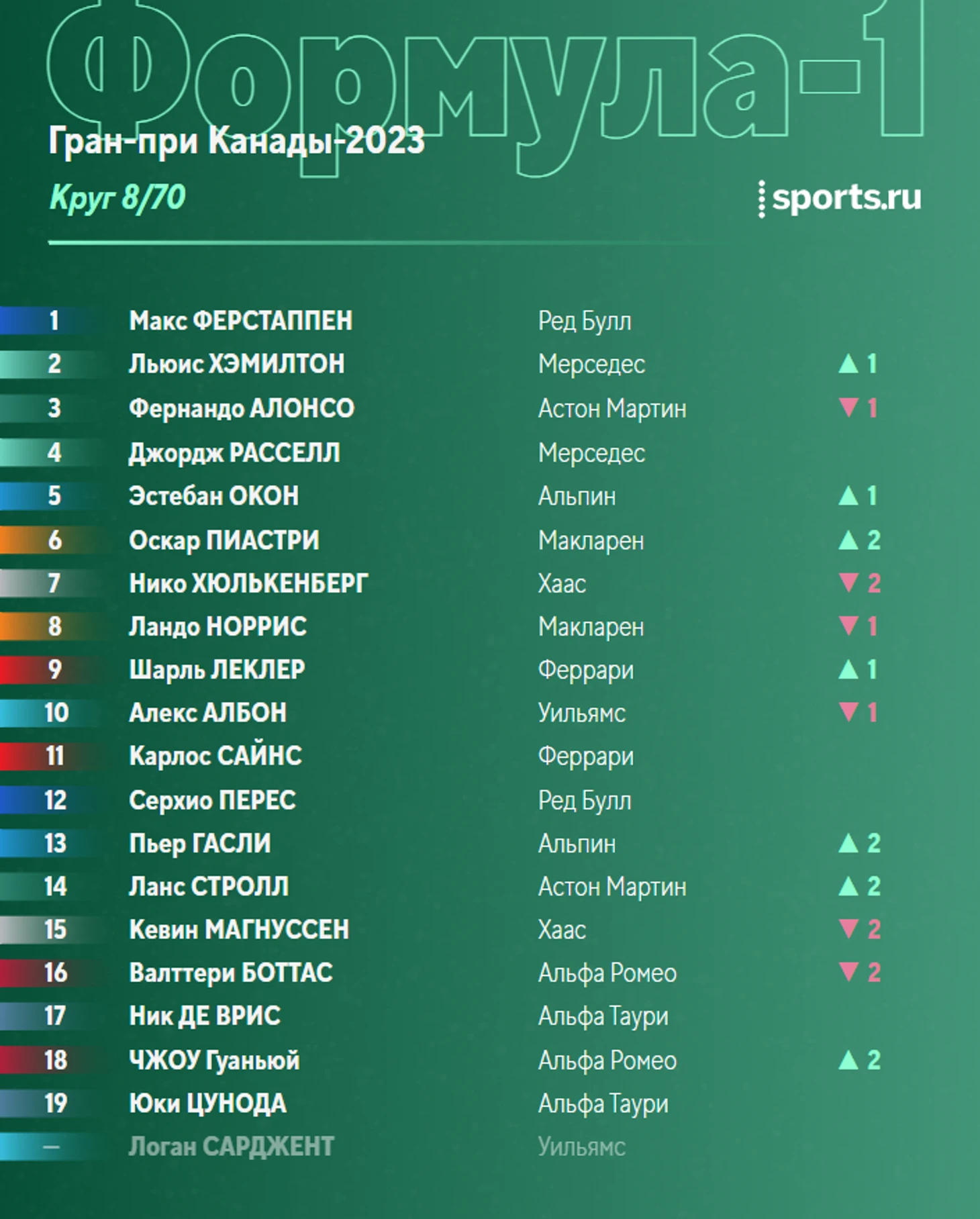 Положение после схода Сарджента