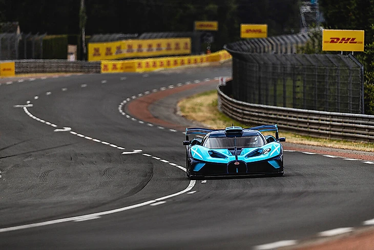 Расцветка – оммаж ливрее Type 57 G Tank, победившего на «Ле-Мане» 1937 года. За рулем – чемпион «Ле-Мана» 1988-го, еще трехкратный победитель «Ле-Мана» в подклассах LMP2 и GT1, обладатель «Тройной короны гонок на выносливость» («Ле-Ман»+«Дайтона»+«Себринг») Энди Уоллес. Он с 2011-го заводской пилот «Бугатти» и числится штатным «рекордсменом» марки – например, выжимал 490 км/ч на Chiron Super Sport 300+.