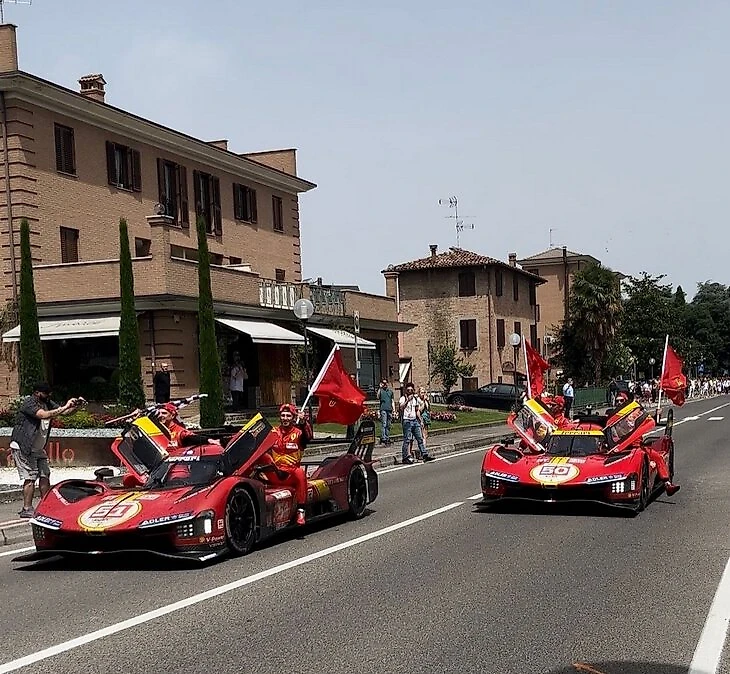 Но в Италии Скудерия не праздновала сразу после «Ле-Мана» – только вывесила традиционный победный флаг на базе в Маранелло. Там же собор прозвонил весь день в колокола, но в остальном создалось впечатление, будто для эпохального события «Феррари» и готовит нечто необычное – например, торжественный парад в центре региона и первоначальной родины марки Модене. Ведь Маранелло – и сейчас маленький городок на 18 тысяч жителей, и Скудерия переехала туда в 1943-м после массовых бомбежек промышленного центра. В Модене же живет 200 тысяч человек, и там тоже все дышит «Феррари».