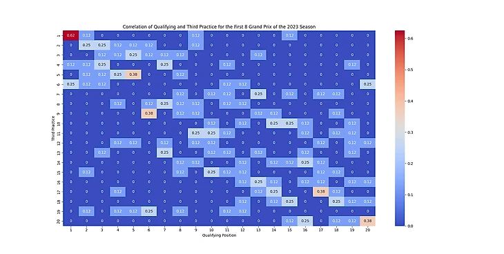 Корреляция позиций в третьей практике и в квалификации в 2023 году