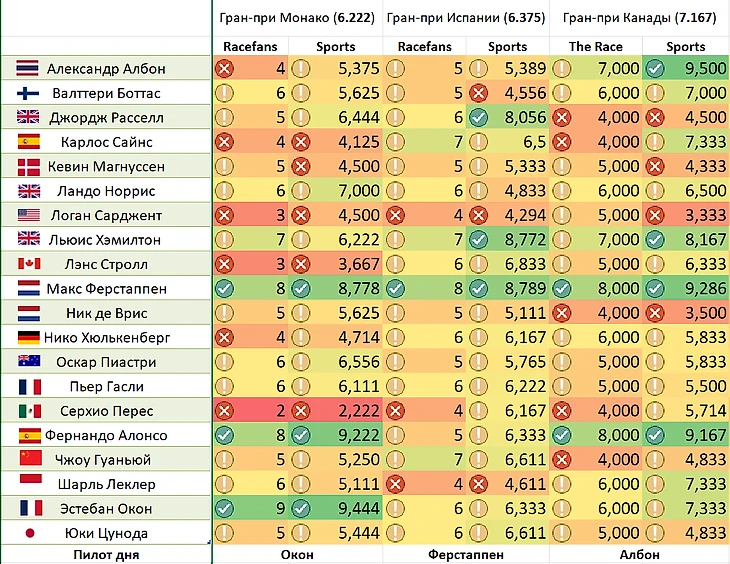 Албон признан пилотом дня в Канаде. В топ-3 рейтинга Алонсо, Ферстаппен и Хэмилтон + мини-аналитика