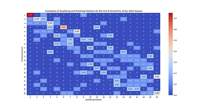 Корреляция позиций в квалификации и в гонке в 2023 году
