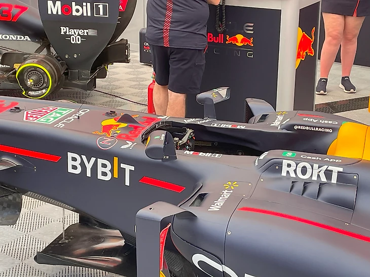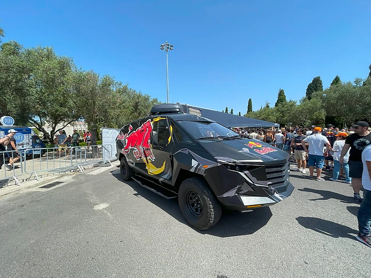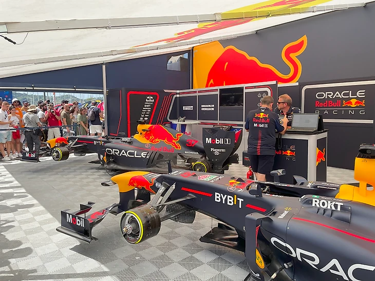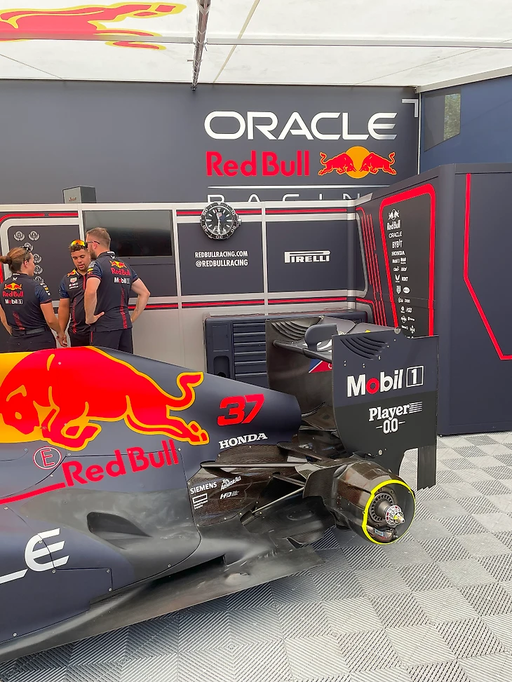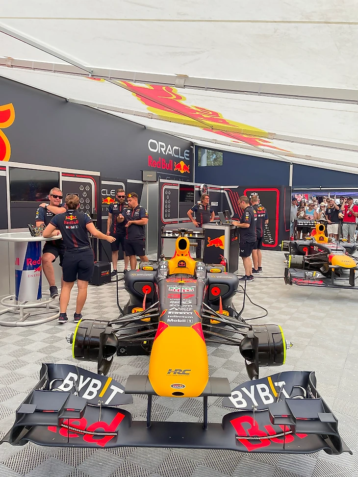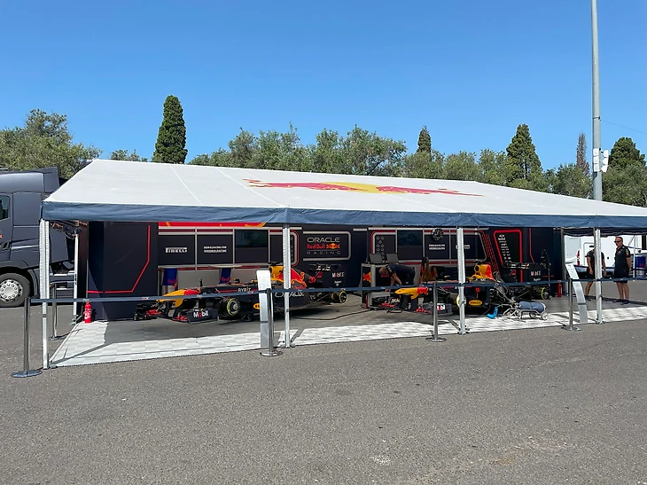 Арка для въезда автомобилей на трассу установлена тут же, буквально в 30 метрах от палатки с болидами Ред Булл.