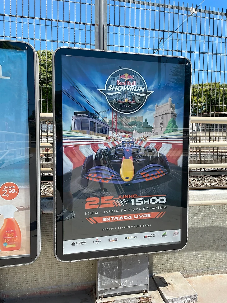 За пару недель до шоу Лиссабон и его окрестности уже были увешены наружной рекламой. Удивительно, но диджитал рекламы было не так много, да и на плакатах нет даже простейших QR-кодов для быстрого перехода на сайт, только его адрес. Очень олдскульный подход, чего точно не ожидаешь от таких гигантов как Ред Булл.