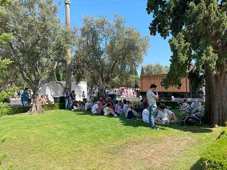 Вдоль трассы предусмотрены стоячие места для зрителей, но есть и временные трибуны. Кто-то спешит занять сидячие места повыгоднее аж за 4 часа (!) до начала ездовой части шоу. Безумцы.
