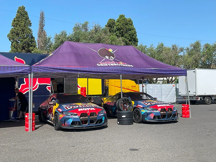 Следом настала очередь дрифтеров на BMW M4. Немец Элиас Хунтонджи и ирландец Конор Шанахан жгли покрышки и не щадили асфальт. Из-за рёва мотора, близости зрительских мест к дорожному полотну и высокой скорости, лично это ощущается более драйвово, чем того можно было б ожидать. Адреналин в крови повышается.