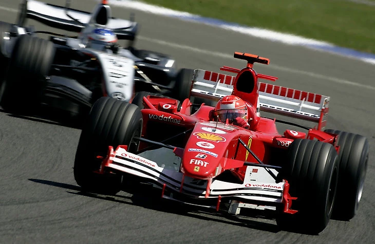 Шумахер между двумя лучшими сезонами в «Феррари» стал участником эпической битвы с Монтойей и Райкконеном, а в 2005-м из-за смены шинных правил вовсе выпал из борьбы за титул.