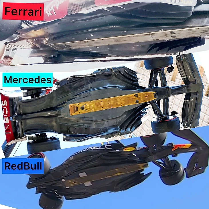 Технические эксперты профильных гоночных сайтов изучали днища «Ред Булл», «Мерседеса» и «Феррари» целый месяц, пытаясь как-то их сопоставить помимо «кажется, у RB19 сильно сложнее» – и, наконец, нашли главные фишки. Паоло Филисетти с RacingNews365 понял, к чему вся трехмерность и переусложненность!