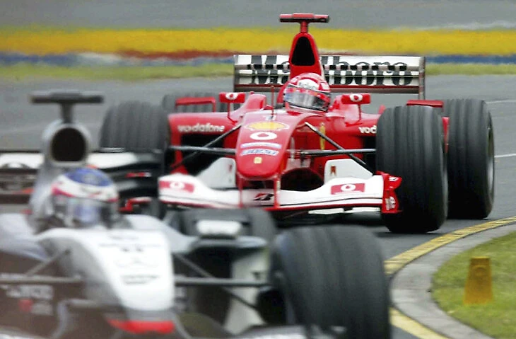 Еще один привет из доминирующей эпохи «Феррари» – после решающего обгона Мики Хаккинена в общем зачете Красного барона было долго не остановить. Вплоть до первого Гран-при 2003-го в Австралии, где Михаэль потерял лидерство из-за стратегической ошибки и финишировал 4-м.