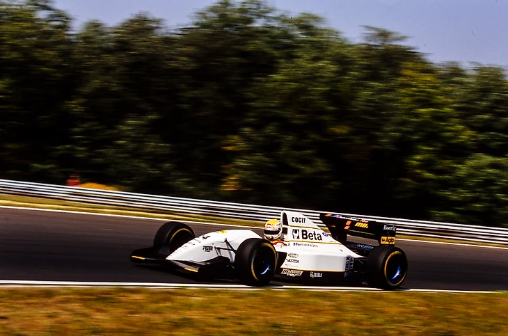 Поэтому было очень обидно, когда итальянец сошел на 60-м круге, поскольку он ехал очень хорошо, и все были рады видеть, что команда Джанкарло Минарди едет так хорошо и ставит в неловкое положение многих с заметно большими бюджетами и техническим преимуществом. В конце концов, это был болид без активной подвески со стандартным мотором «Форда». А ведь здесь было много неровностей. К сожалению, пилот «Минарди» потерял управление на выходе из 10-го поворота и боком врезался в барьеры.